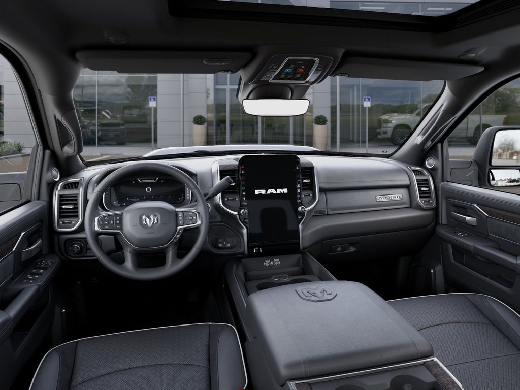 Our Laramie cabin offers a commanding experience in comfort, thanks to its heated and ventilated leather power front seats, a leather-wrapped steering wheel, dual-zone automatic climate control, an interior 115V/400W outlet, keyless access and ignition, power-adjustable pedals with memory, a power sliding rear window, and remote start. Full-color navigation helps you find your way while staying connected with a 12.0-inch touchscreen, WiFi compatibility, Amazon Alexa compatibility, Android Auto, Apple CarPlay, Bluetooth, voice control, and Alpine audio.