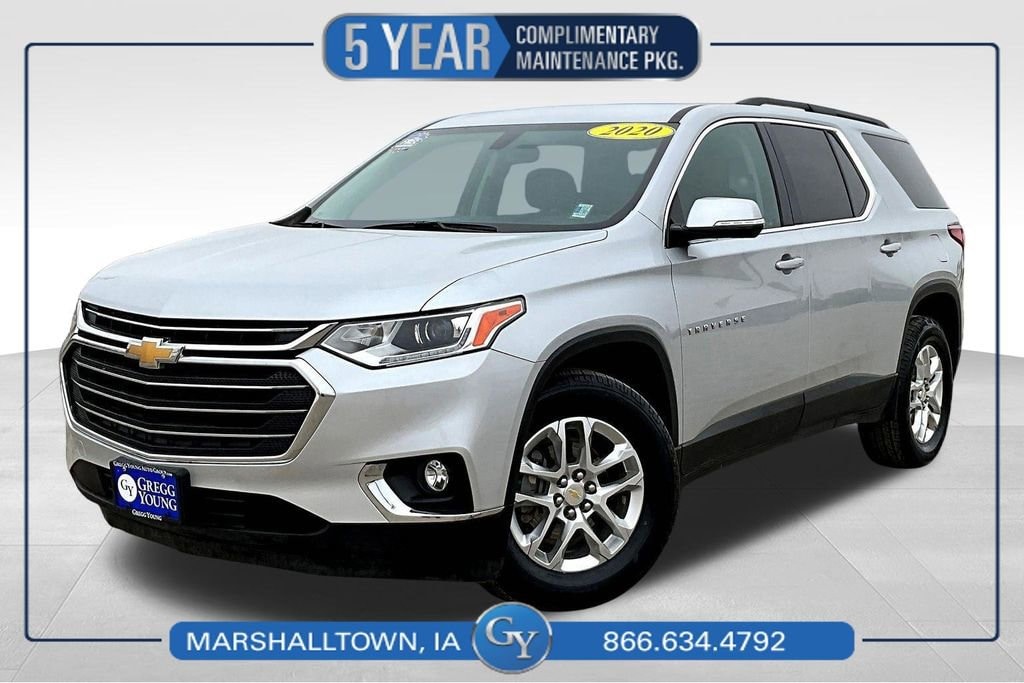 Our One Owner, Accident Free 2020 Chevrolet Traverse LT AWD moves forward with style and comfort in Silver Ice Metallic! Powered by a 3.6 Liter V6 delivering 310hp connected to a 9 Speed Automatic transmission for confident capability. This All Wheel Drive SUV also scores nearly 25mpg on the highway, and it's a great choice for commuting, car-pooling, camping out, and more. Check out our bold Traverse for LED lighting, fog lamps, heated power mirrors, roof rails, deep-tinted glass, a power liftgate, and 18-inch alloy wheels.