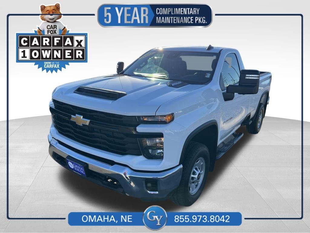 Why BUY from Gregg Young Chevy Omaha? When you choose this Summit White 2025 Chevrolet Silverado 2500HD Work Truck with 14,847 miles, you are not just buying a used vehicle - you are investing in quality, reliability and peace of mind. Our clientele depend on us for Transparent Pricing, Convenience and, most importantly, Customer FIRST Service! All purchases include 5 year Complimentary Maintenance Package, valued at over $1,000! What this vehicle includes: WT Convenience Package ($785 value)Deep-Tinted GlassElectric Rear-Window DefoggerEZ Lift Power Lock and Release TailgatePreferred Equipment Group 1WTLocking TailgateChevrolet Connected Access CapableSolar Absorbing Tinted GlassRemote Keyless EntryPower Door LocksPower Front Windows with Driver Express Up/downRubberized-Vinyl Floor CoveringBluetooth For PhonePush Button StartCompassDurabed Pickup Bed3.73 Rear Axle RatioElectronic Cruise Control with Set and Resume Speed170 Amp Alternator6.6L Gas V8 Engine with Direct Injection and VVTBlack Mirror CapsAllison 10-Speed Automatic TransmissionManual Tilt-Wheel Steering Column2-Speed Electronic Shift Transfer CaseWireless Phone Projection17" Silver Painted Steel WheelsStandard TailgateManual Tailgate Function with No EZ Lift3.5" Diagonal Monochromatic Display DICOnStar Services CapableHD Rear Vision CameraBlack Front BumperBlack Rear BumperWi-Fi Hotspot CapableSuspension PackageSnow Plow Prep/camper Package ($530 value)220 Amp AlternatorSkid Plates Safety and Security Forward collision mitigation - Forward thinking. You look away for just a second and suddenly the vehicle in front of you has stopped. That's when the forward collision mitigation system comes to life. When it senses an impending impact, it will activate a combination of features to help prevent or reduce the severity of an accident. Forward collision mitigation is always looking ahead. Pedestrian impact prevention - An extra step toward safety. Pedestrians don't always stop, look, and listen, but with Pedestrian Impact Prevention, your vehicle is equipped to better see them and avoid them. This system constantly monitors the road ahead to identify and track pedestrians. It projects that image to an interior display screen, AND should an impact become likely, Pedestrian impact prevention takes steps to avoid a collision. Rear camera - Watching your back! The rear camera helps you see obstacles and hazards you otherwise couldn't by showing enhanced images of what is behind you. The rear camera is an extra set of eyes that's both convenient and safe.Technology and Telematics Apple CarPlay/Android Auto smart device wireless mirroring Mobile hotspot - WiFi on the fly. Connect your devices to the Internet through your vehicles private mobile hotspot and take the internet wherever your journey takes you, without eating up your data allowance. Find the hotspot with mobile hotspot. DURABED, PICKUP BED, EMISSIONS, FEDERAL REQUIREMENTS, ENGINE, 6.6L V8, TRANSMISSION, ALLISON 10-SPEED AUTOMATIC, LOWERED GVWR, 10,000 LBS. (4536 KG), REAR AXLE, 3.73 RATIO, WHEELS, 17" (43.2 CM) PAINTED STEEL, SILVER, TIRES, LT265/70R17E ALL-TERRAIN, BLACKWALL, TIRE, SPARE LT265/70R17E ALL-TERRAIN, BLACKWALL, SUMMIT WHITE, SEATS, FRONT 40/20/40 SPLIT-BENCH, JET BLACK, VINYL SEAT TRIM, AUDIO SYSTEM, CHEVROLET INFOTAINMENT 3 SYSTEM, WT CONVENIENCE PACKAGE, SNOW PLOW PREP/CAMPER PACKAGE, ALTERNATOR, 220 AMPS, SKID PLATES, BUMPER, FRONT CHROME, BUMPER, REAR CHROME, POWER OUTLET, BED MOUNTED, 120-VOLT, MIRRORS, OUTSIDE POWER-ADJUSTABLE VERTICAL TRAILERING WITH HEATED AND AUTO-DIMMING UPPER GLASS, GLASS, DEEP-TINTED, CHEVYTEC SPRAY-ON BEDLINER, LICENSE PLATE KIT, FRONT, TAILGATE, GATE FUNCTION MANUAL WITH EZ LIFT, POWER OUTLET, INTERIOR, 120-VOLT, DEFOGGER, REAR-WINDOW ELECTRIC, MIRROR, INSIDE REARVIEW AUTO-DIMMING When you choose a Certified Pre-Owned vehicle from Gregg Young, youre not just buying a used car youre getting extra protection, added peace of mind, and built-in value you wont find with an