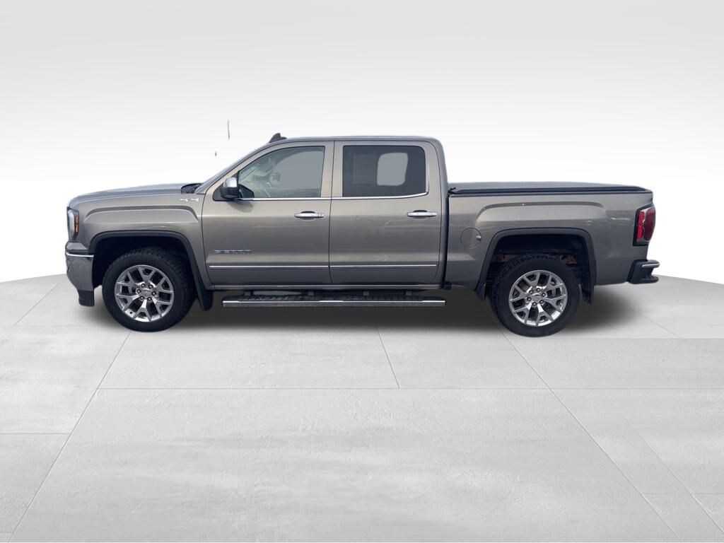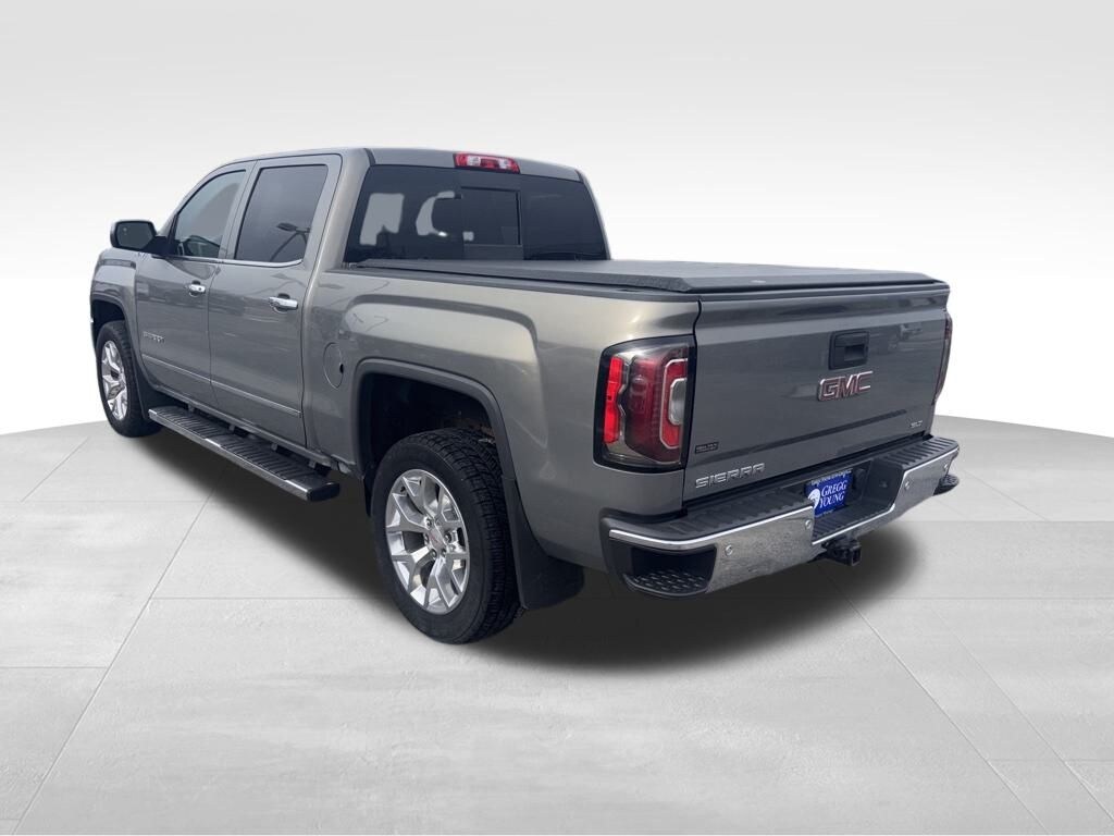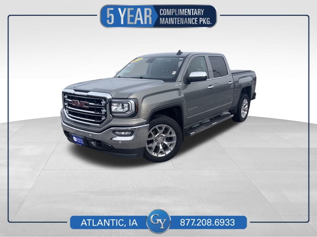 Our Accident Free 2017 GMC Sierra 1500 SLT Crew Cab 4X4 serves up power, capability, comfort, and style in Pepperdust Metallic! Motivated by a 5.3 Liter EcoTec3 V8 that provides 355hp paired with a 6 Speed Automatic transmission. This Four Wheel Drive truck also comes standard with a trailering package for easy towing, and it scores nearly 22mpg on the highway. Ruggedly handsome, our Sierra shows off HID headlamps, LED fog lamps, alloy wheels, heated power mirrors, an EZ Lift and Lower tailgate, and chrome bumpers with a rear CornerStep.