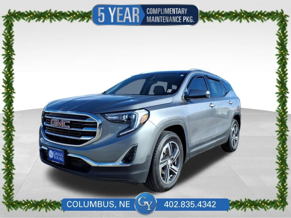 Our striking **Accident Free**2021**GMC**Terrain**SLT**AWD**Infotainment II Package**GMC Pro Safety Plus** delivers smart utility and an upscale design in Satin Steel Metallic! Motivated by a TurboCharged 1.5 Liter 4 Cylinder providing 170hp matched to a 9 Speed Automatic transmission that moves you with confidence. This All Wheel Drive SUV also masters every mile with composed handling, scores nearly 28mpg on the highway, and sets you apart from the crowd with its sophisticated shape. HID headlamps, C-shaped LED signature lighting, fog lamps, 18-inch alloy wheels, and a hands-free tailgate for premium functionality you'll appreciate when loading up.Take your place in our two-row SLT cabin, and you're surrounded by the comfort and features you crave. It all starts with the perforated leather, heated power front seats, a heated leather steering wheel, dual-zone automatic climate control, an auto-dimming rearview mirror, and remote start. Our high-tech Terrain adds our package's connected navigation and Bose audio with HD Radio with an 8-inch touchscreen, Android Auto/Apple CarPlay, Bluetooth, and WiFi compatibility for easy connections.GMC lets you cruise with peace of mind, knowing technologies like an HD backup camera, automatic braking, lane-keeping assistance, a rear-seat reminder, hill-descent control, and more are all standard. Drive our Terrain SLT and discover the difference a Professional-Grade SUV will make in your life! Save this Page and Call for Availability. We Know You Will Enjoy Your Test Drive Toward Ownership!