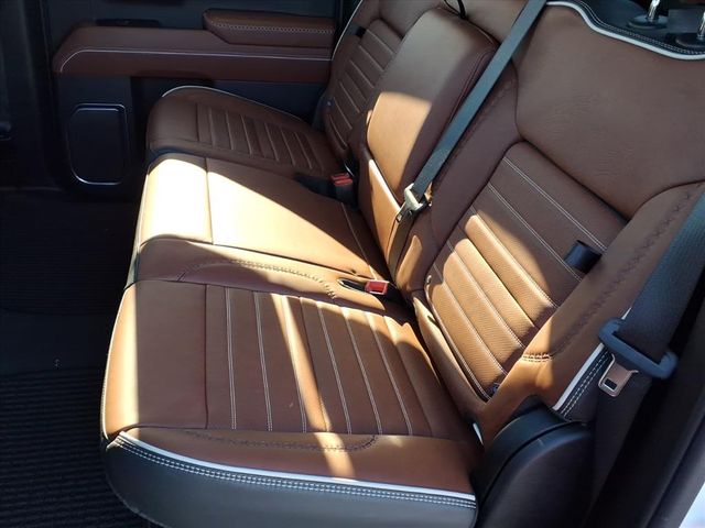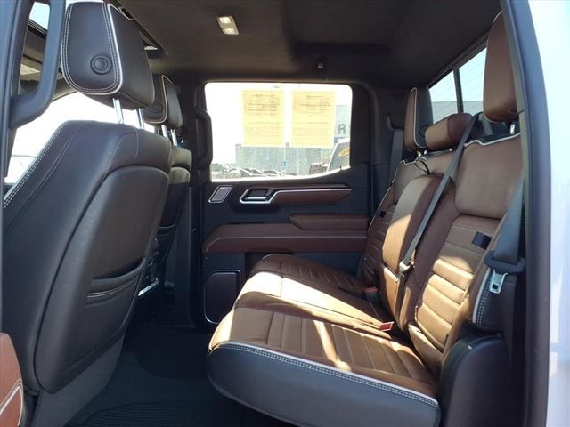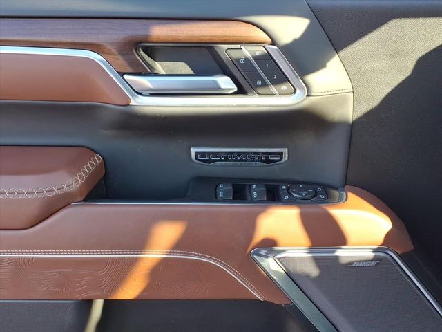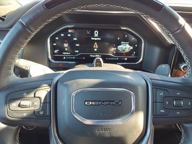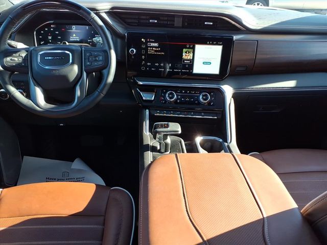 Our Denali Ultimate cabin brings first-class accommodations to full-size trucks with heated/ventilated leather power front and heated rear seats, a heated leather power steering wheel, dual-zone automatic climate control, and two large dash-mounted displays. You can use the 13.4-inch touchscreen and 12.3-inch driver display to enjoy WiFi compatibility, Google Built-In, wireless Android Auto/Apple CarPlay, Bluetooth, a full-color navigation system, wireless charging, Bose audio, and voice control.