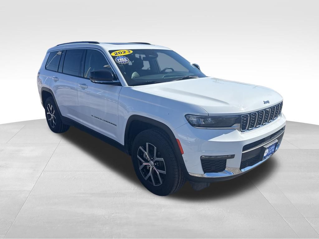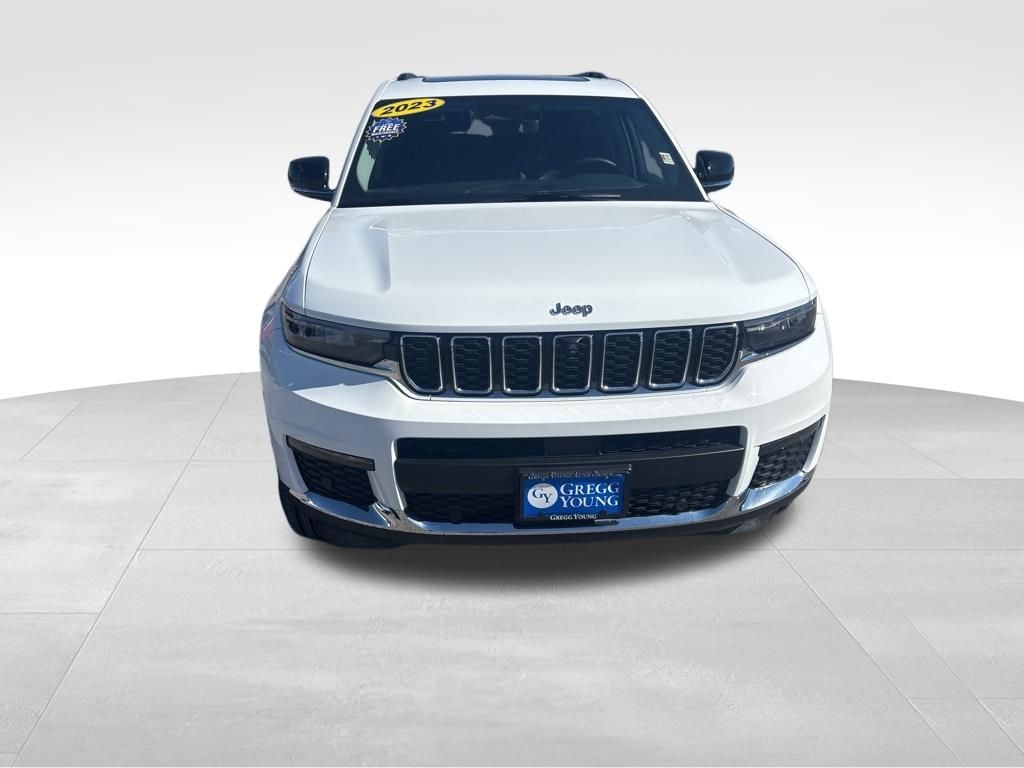 Power up our Accident Free, One Owner 2023 Jeep Grand Cherokee L Limited 4X4 with the Luxury Tech II Pack, and cross the border to adventure in Bright White! Motivated by a 3.6 Liter Pentastar V6 that supplies 293hp to an 8 Speed Automatic transmission for family-friendly capability. You can also engage the Sport mode for next-level performance, and this Four Wheel Drive SUV sees nearly 25mpg on the highway. Our Grand Cherokee turns heads with LED lighting, fog lamps, a height-adjustable power liftgate, heated power mirrors, alloy wheels, and roof rails.