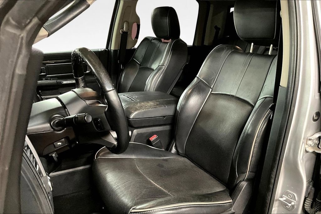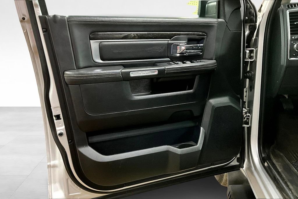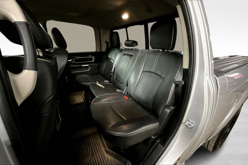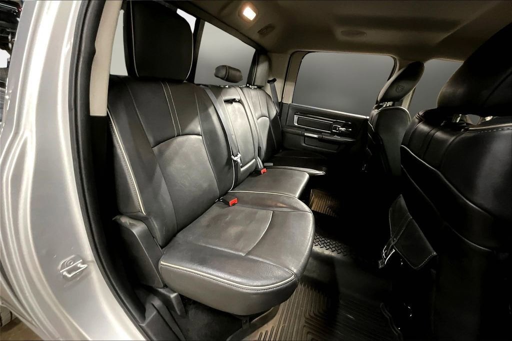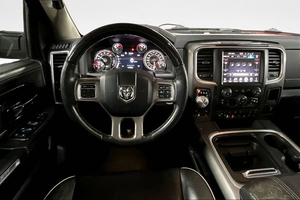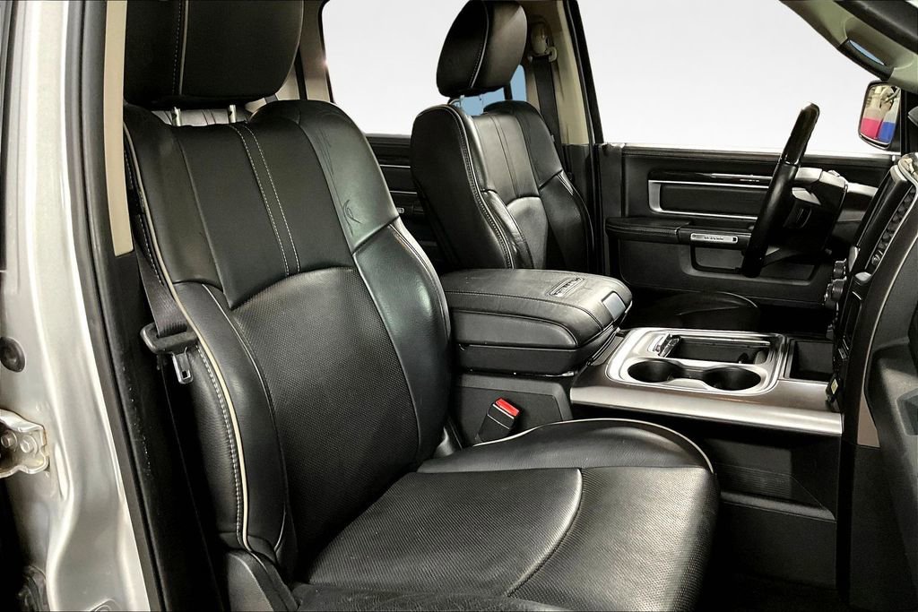 Luxury and power abound in our **2015**RAM 1500**Laramie Longhorn**Crew Cab**4X4**Navigation**Heated Steering Wheel** presented in striking Bright Silver Metallic. Powered by a TurboCharged 3.0 Liter Eco-Diesel 6 Cylinder that offers 240hp and massive torque while paired with a TorqueFlite 8 Speed Automatic transmission. This efficient Four Wheel Drive team rewards you with nearly 22mpg on the road, a smooth ride, and tremendous towing capacity! You'll make a powerful first impression in your 1500 that is highlighted by running boards, a distinct grille, and prominent wheels that enhance the aerodynamics of this machine.Inside our Laramie Longhorn, you'll find a prominent central touchscreen display with a rearview camera, UConnect® with voice control, full-color navigation, and a power outlet to keep you charged. Enjoy traveling in comfort and style with power-adjustable filigree heated/ventilated leather seats, a heated steering wheel, memorized driver settings, and a premium sound system. Anyone who sees it will admire the upscale interior thoughtfully designed to meet your needs.Safety is priority number one with RAM, and with stability control, hill start assist, trailer sway control, front-seat side airbags, and full-length side curtain airbags, you can rest easy knowing you'll be safeguarded. Now is the time to make this 1500 Laramie Longhorn your partner for work and play. Save this Page and Call for Availability. We Know You Will Enjoy Your Test Drive Toward Ownership!