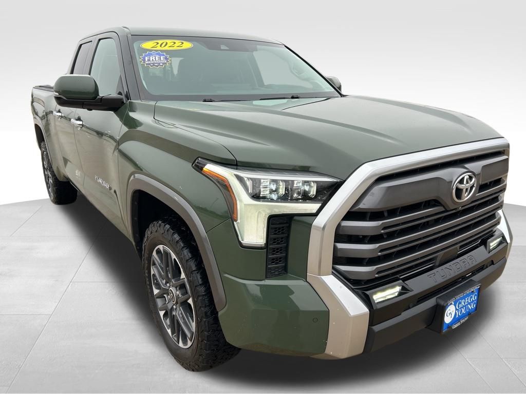 Our upscale Accident Free 2022 Toyota Tundra Limited Double Cab 4X4 blends capability, comfort, and a commanding Army Green design! Motivated by a Twin-TurboCharged 3.5 Liter i-FORCE V6 supplying 389hp matched to a 10 Speed Automatic transmission for a feeling of effortless strength. You can use that muscle to master workdays and weekends alike, and this Four Wheel Drive truck scores nearly 22mpg on the highway. Our Tundra also looks terrific with its mighty grille, LED lighting, fog lamps, an easy lift/lower tailgate, heated power-folding mirrors, an aluminum-reinforced composite bed, a tonneau cover, 20-inch alloy wheels, and sophisticated chrome details.
