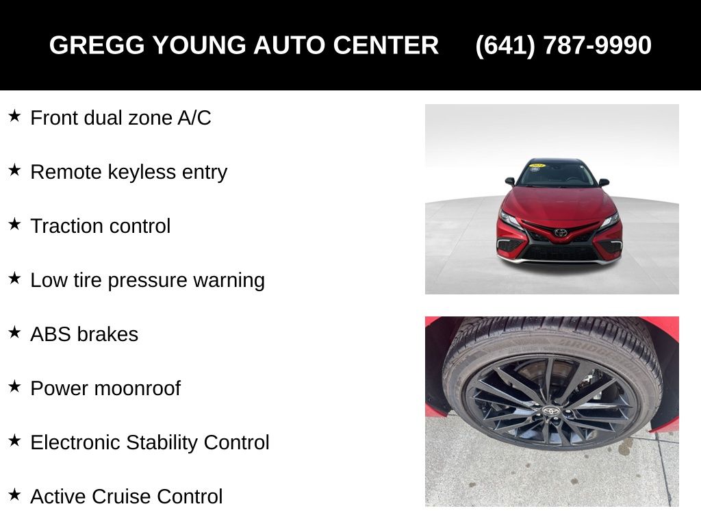 A long list of advanced Toyota technologies is on board for your safety, including adaptive cruise control, automatic braking, blind-spot monitoring, lane-keeping assistance, rear cross-traffic alert, a rearview camera, pedestrian detection, and more. You can stay confident in our Camry XSE V6 with features like those! Save this Page and Call for Availability. We Know You Will Enjoy Your Test Drive Towards Ownership!