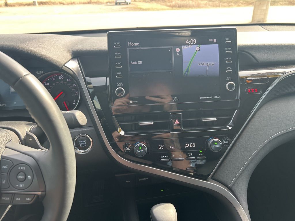 Slide inside our XSE V6 cabin that inspires enthusiastic driving with heated and cooled leather power front seats, a leather-wrapped heated steering wheel, dual-zone automatic climate control, keyless access, patterned metal trim, ambient lighting, and pushbutton ignition. Our Camry helps keep you connected with a 9-inch touchscreen, full-color navigation, Android Auto/Apple CarPlay, Bluetooth, WiFi compatibility, wireless charging, and a JBL sound system.
